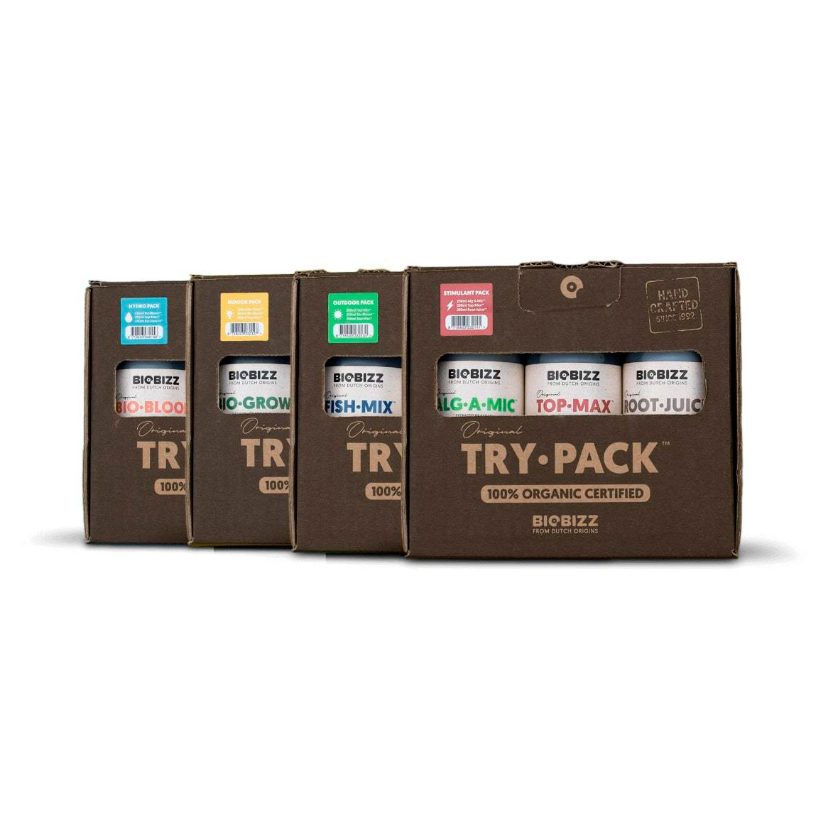 Trypack di Biobizz sono composti da 3 fertilizzanti della linea nelle confezioni da 250 ml, i trypack disponibili sono:
