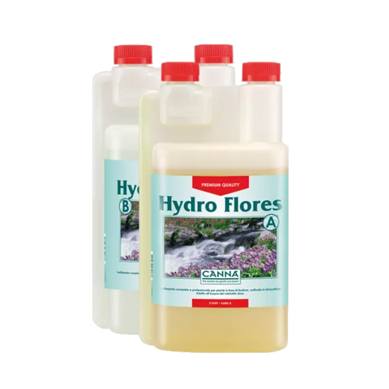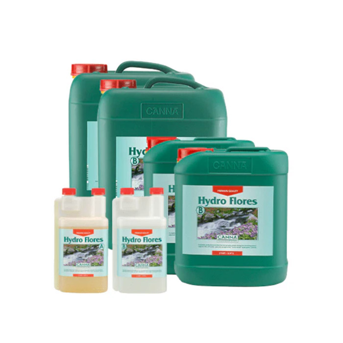 Questo prodotto viene utilizzato principalmente nei sistemi a “ciclo aperto” ovvero dove la soluzione drenata viene eliminata direttamente dopo ogni irrigazione. Canna HYDRO è un fertilizzante bicomponente ed è disponibile nella versione VEGA A+B per la crescita vegetativa e FLORES A+B per la fioritura.
