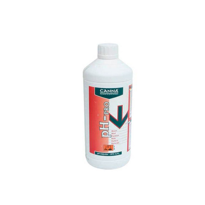 Il Ph Down Pro di Canna è un regolatore di pH adatto alla fase di fioritura, in quanto contiene acido fosforico. Si usa per abbassare il ph dell’acqua o della soluzione nutritiva, concentrato al 59%.