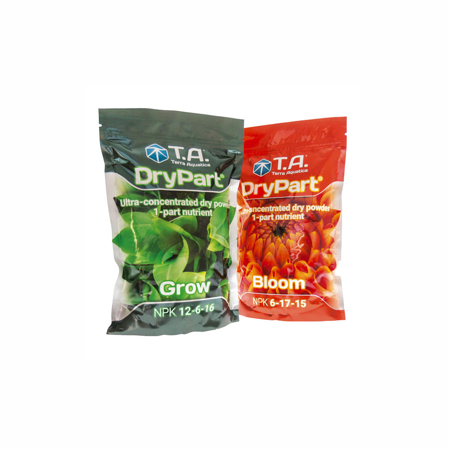 Il DryPart Grow  & Bloom è il prodotto di Terra Aquatica (GHE) più concentrato di sempre, per questo tipo di fertilizzazione si utilizzano 2 prodotti a base minerale, uno per la vegetativa, uno per la fioritura.