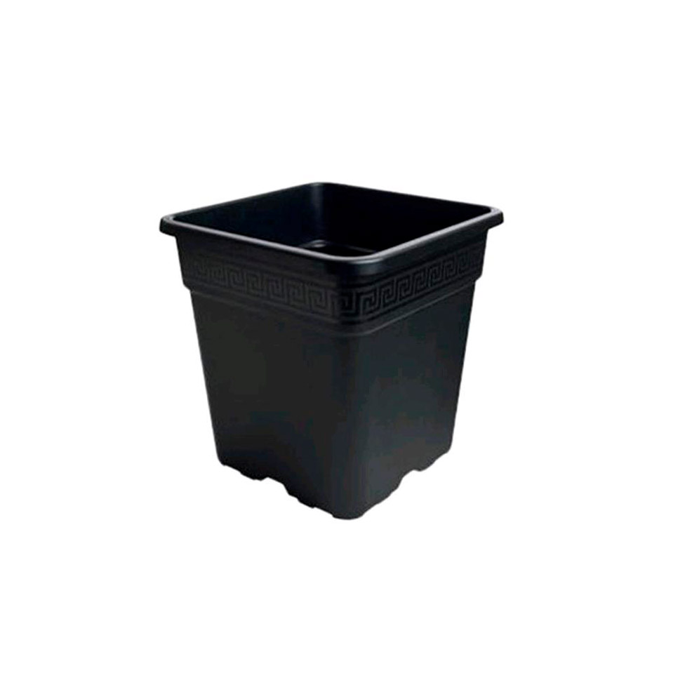 Il Vaso quadrato in plastica di P&B è nero, di plastica di alta qualità, dura e resistente con decorazione greca in alto.